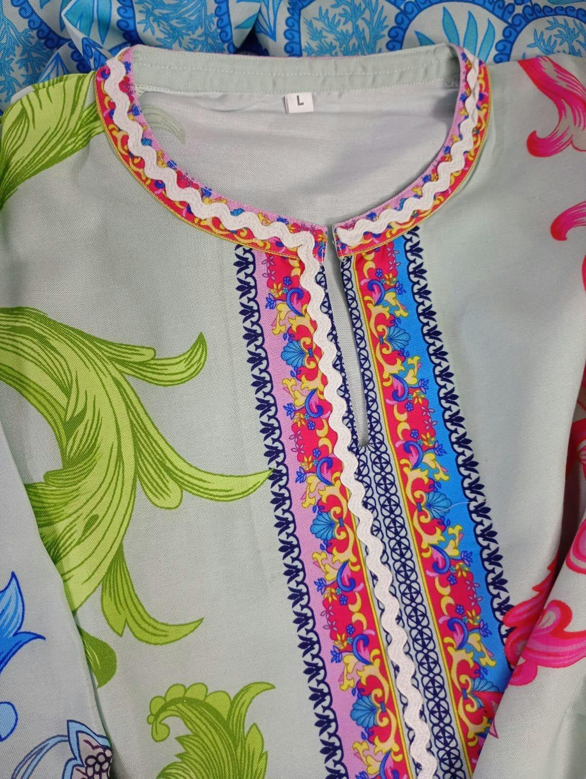 🎨 Color: Soft pastel shades with elegant printed detailing.